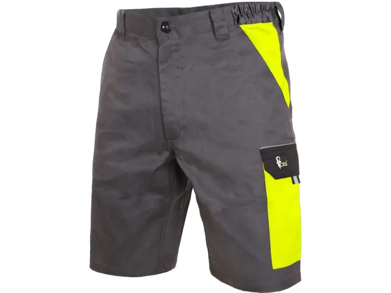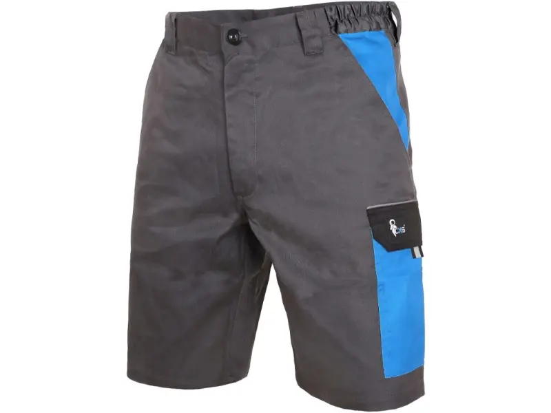 Pánské montérkové kraťasy z lehkého materiálu, pas s poutky na opasek a gumou v bocích, přední klínové kapsy, boční kapsa s klopou, kapsa na skládací/svinovací metr, zadní jednoduchá kapsa na pravé straně, reflexní doplňky. Doporučené použití: letní pracovní oděv, stavebnictví, strojírenství, lehký průmysl, automobilový průmysl, logistika, skladová manipulace, spedice, autoservisy, údržba, montáže, zemědělství, učiliště, zahrada, hobby. Vel.46-68
