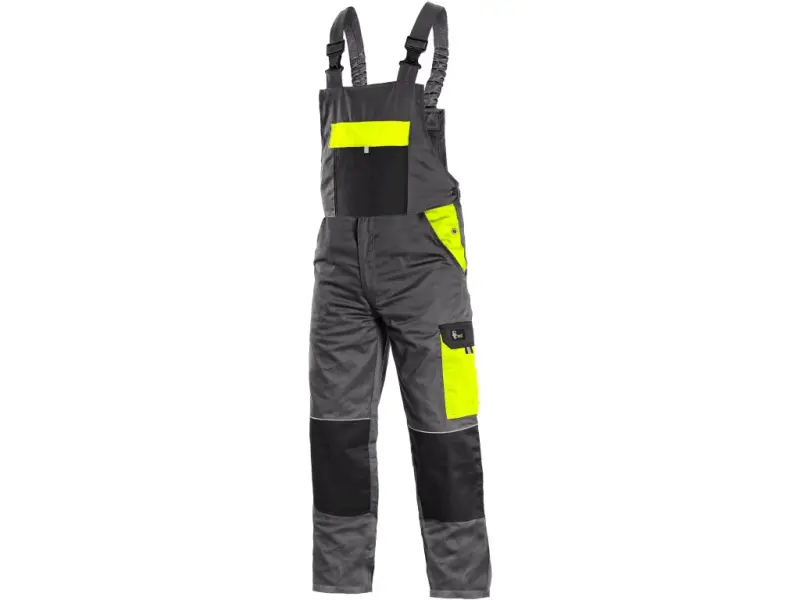 Pánské montérkové kalhoty s náprsenkou, z lehkého materiálu, náprsní kapsa s klopou, přední klínové kapsy, boční kapsa s klopou, kapsa na skládací/svinovací metr, zdvojená kolena, zadní jednoduchá kapsa, šle vzadu na gumu, reflexní doplňky. Díky odlehčené gramáži vhodné pro práci nejen v letním období, ale také celoročně ve vytápěných provozech. Doporučené použití: stavebnictví, strojírenství, lehký průmysl, automobilový průmysl, logistika, skladová manipulace, spedice, autoservisy, údržba, montáže, zemědělství, učiliště, zahrada, hobby.